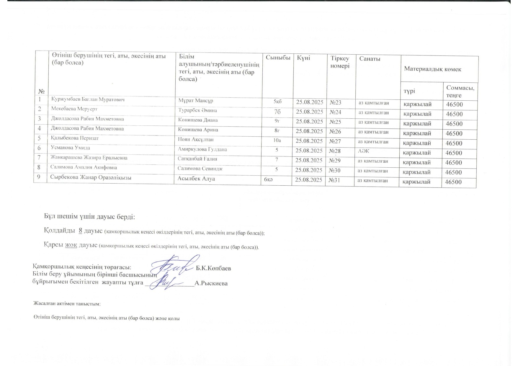 Құжаттар 19.08.2025-25.08.2025ж. күндері қабылданады.