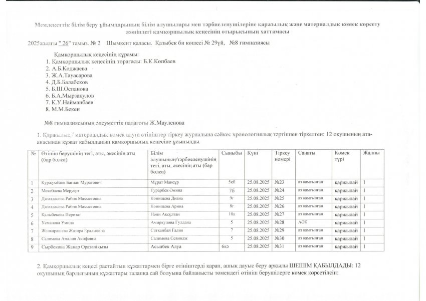 8.Қамқоршылық кеңес отырысының хаттамасы