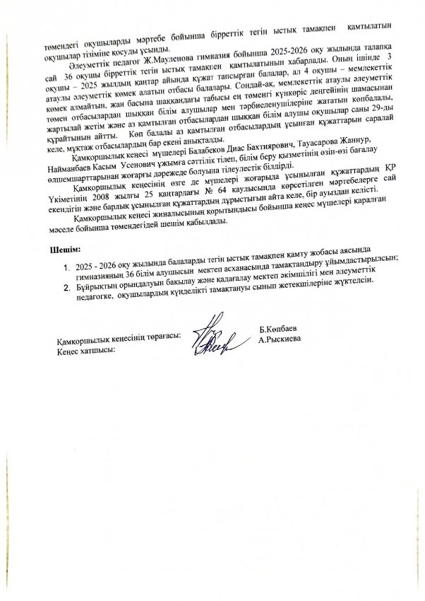 6.Қамқоршылық кеңес отырысының хаттамасы