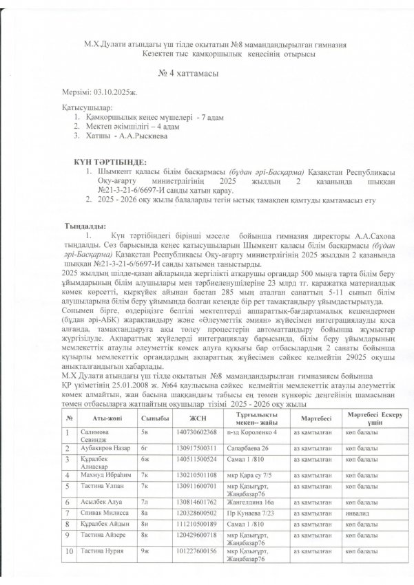 4.Кезектен тыс педагогикалық кеңестің хаттамасы (бастапқы)